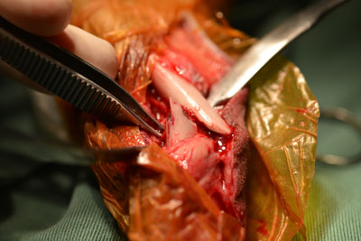手術ではまず骨折部を露出し正しい位置に整復します。