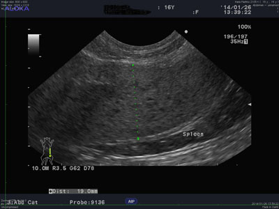 身体検査で脾臓の腫大が認められましたが、血液検査では食欲不振の原因になる様な異常は認められませんでした。